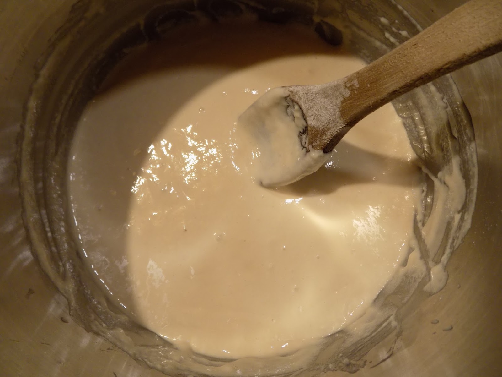 Kõigepealt tuleks pärm suhkruga (1 spl) vedelaks hõõruda ja siis sinna juurde lisada käesoe vesi, segada segi. Siis lisada pool jahu hulgast u 350 g. Puulusikaga segada korralikult segi, et oleks selline ühtlane ja läikiv, siis jätta sooja kohta kerkima, et taigen oleks kahekordne (peale tekivad mullid).
