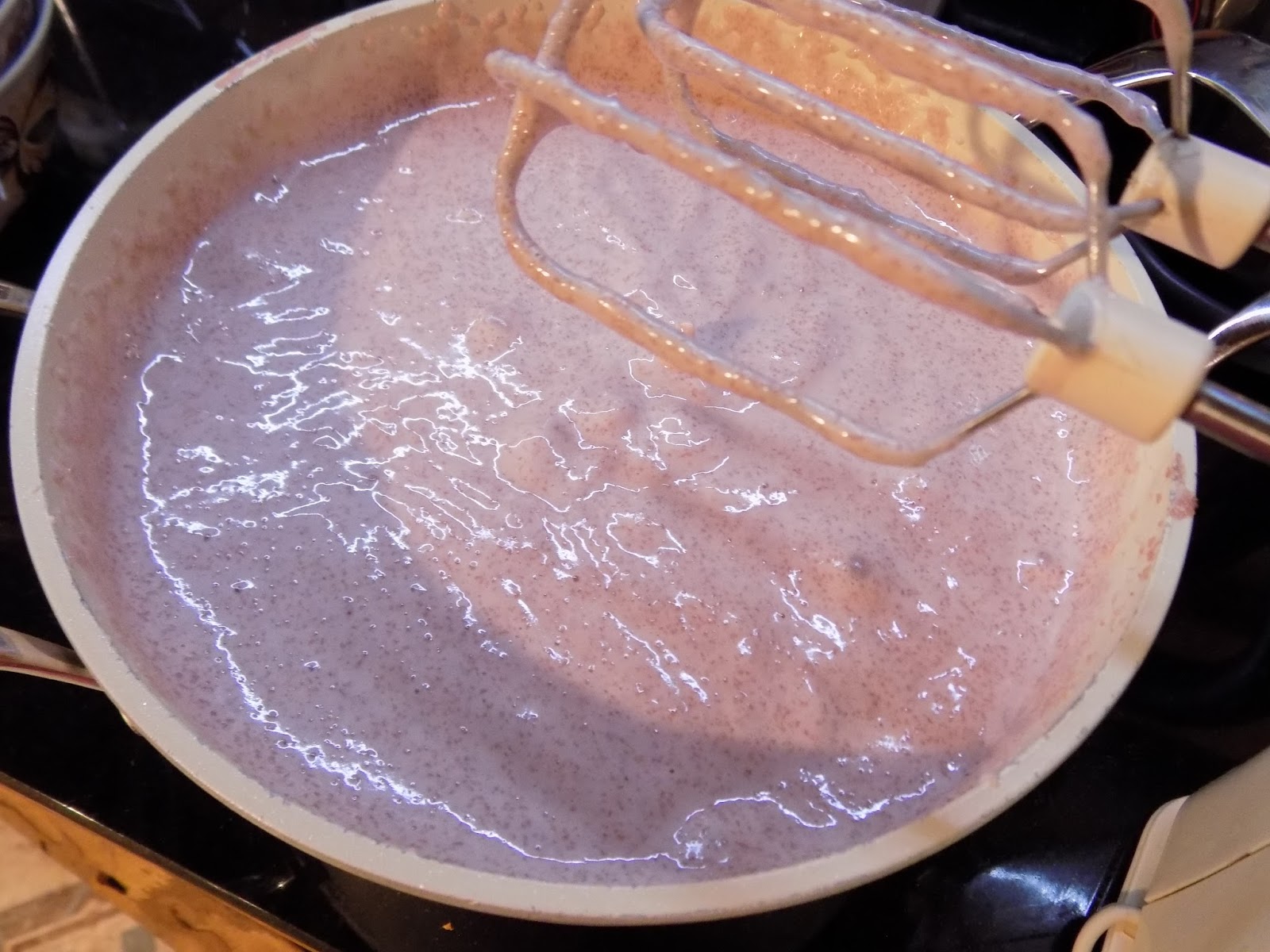 Kui segu keeb, segan juurde manna, mis hakkab kohe paksenema. Madalal tulel lasen umbes 7-10 minutit tal podiseda, ise vahepeal ikka segades. Selleks ajaks on manna ära paisunud ja võib poti viia natukeseks ajaks kuskile jahtuma, kas õue või esikusse. Segu liiga paks ei tohiks olla, muidu pärast on võimatu teda mikserdada ja tulemuseks ei ole mõnus vaht. Aga see retsept ei ole mind ühtegi korda alt vedanud.