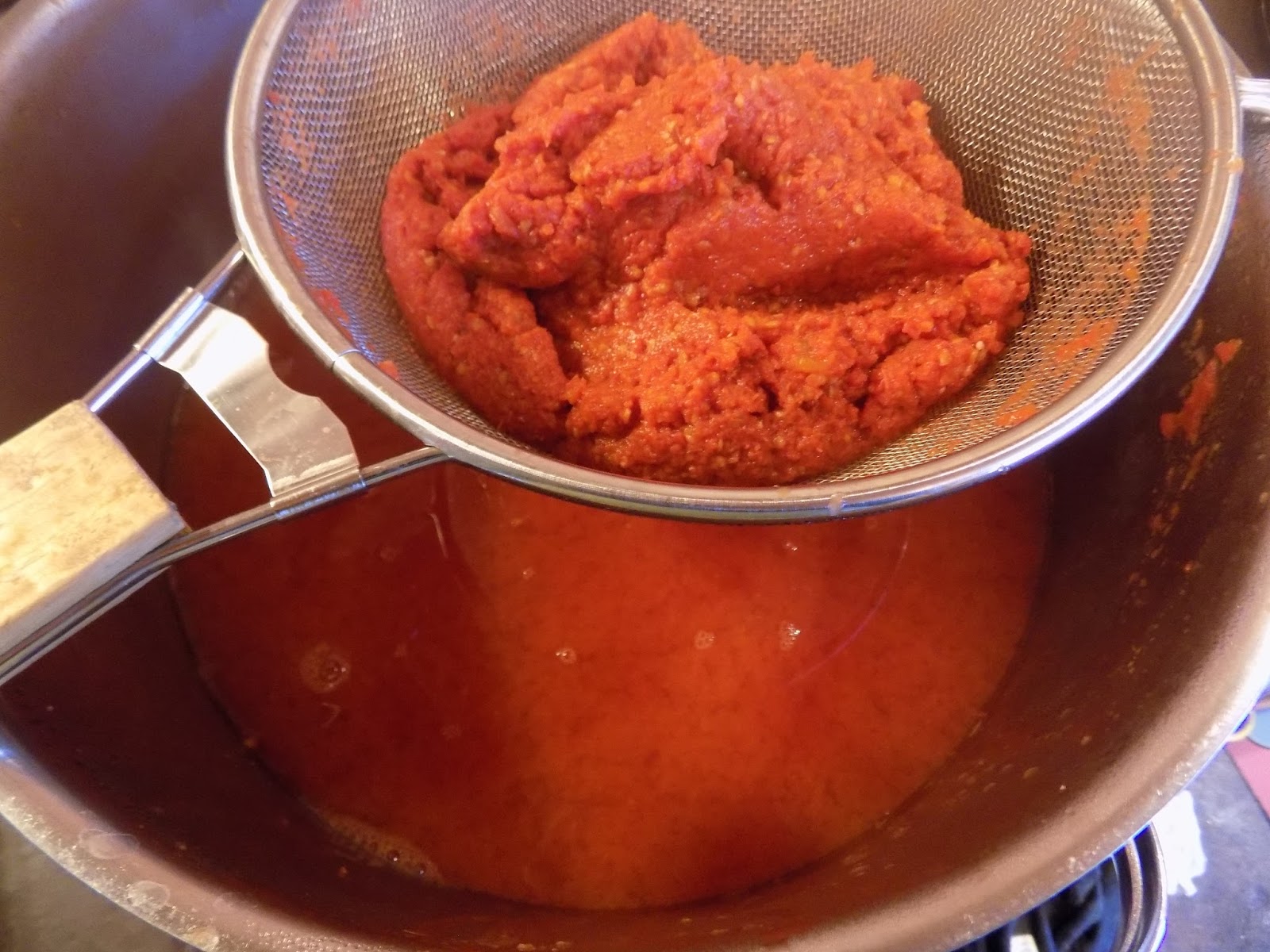 Kõigepealt siis tuleb ära pesta ja puhastada tomatid, eemaldada kiuline varrekoht ja muld. Siis lõikuda ja suruda blenderisse, et saaks paksu tomatise pudru. See valada kohe potti ja keerata pliit tööle, lasta segul keema tõusta ja natuke aeg keeda, et kaoks ära toores tomati maik. Siis kurnata läbi sõela. Sõela peale jääb kõige ehedam paks tomatipasta, mille võib ükskõik mis toidu sisse ära kasutada.