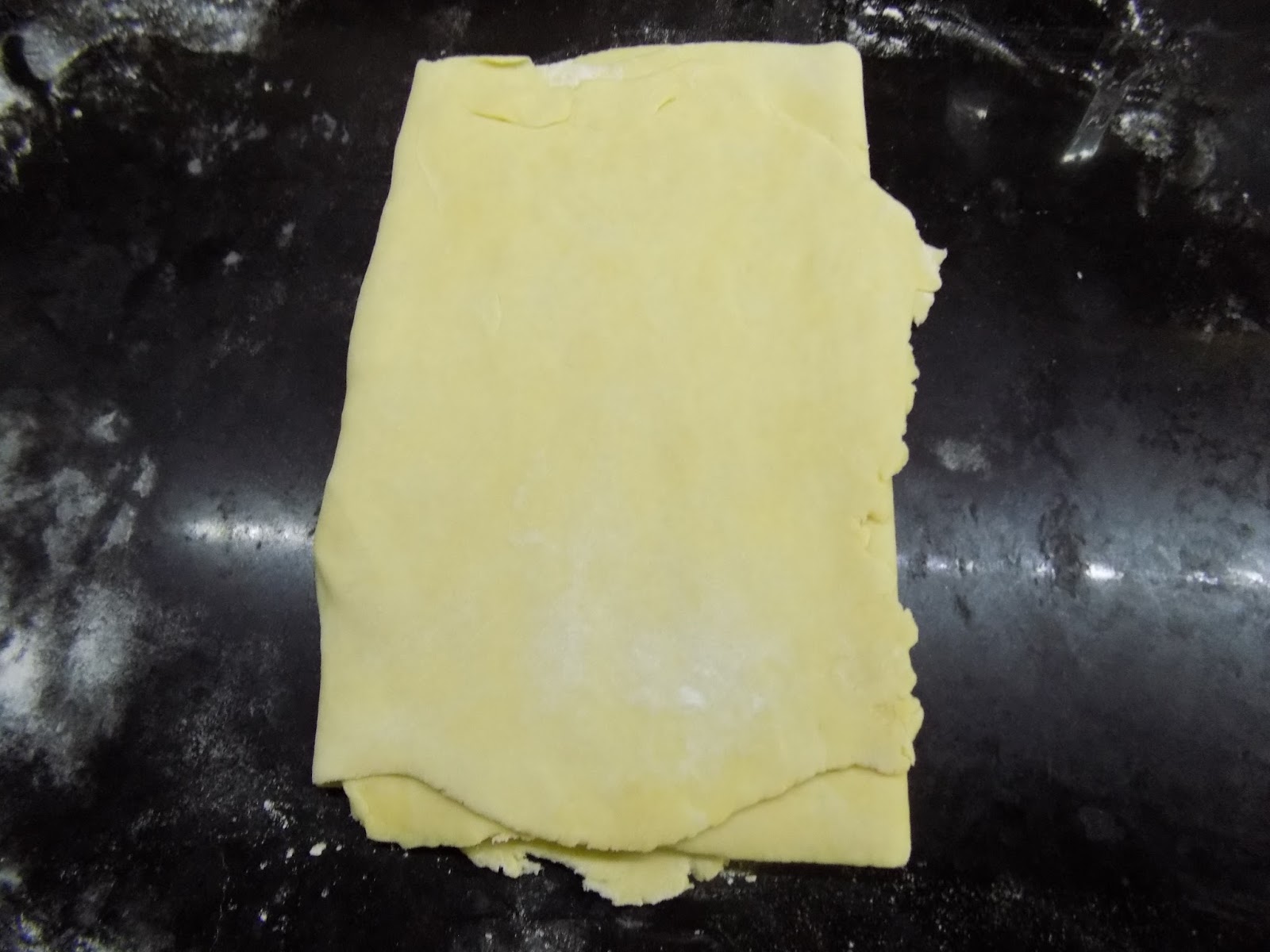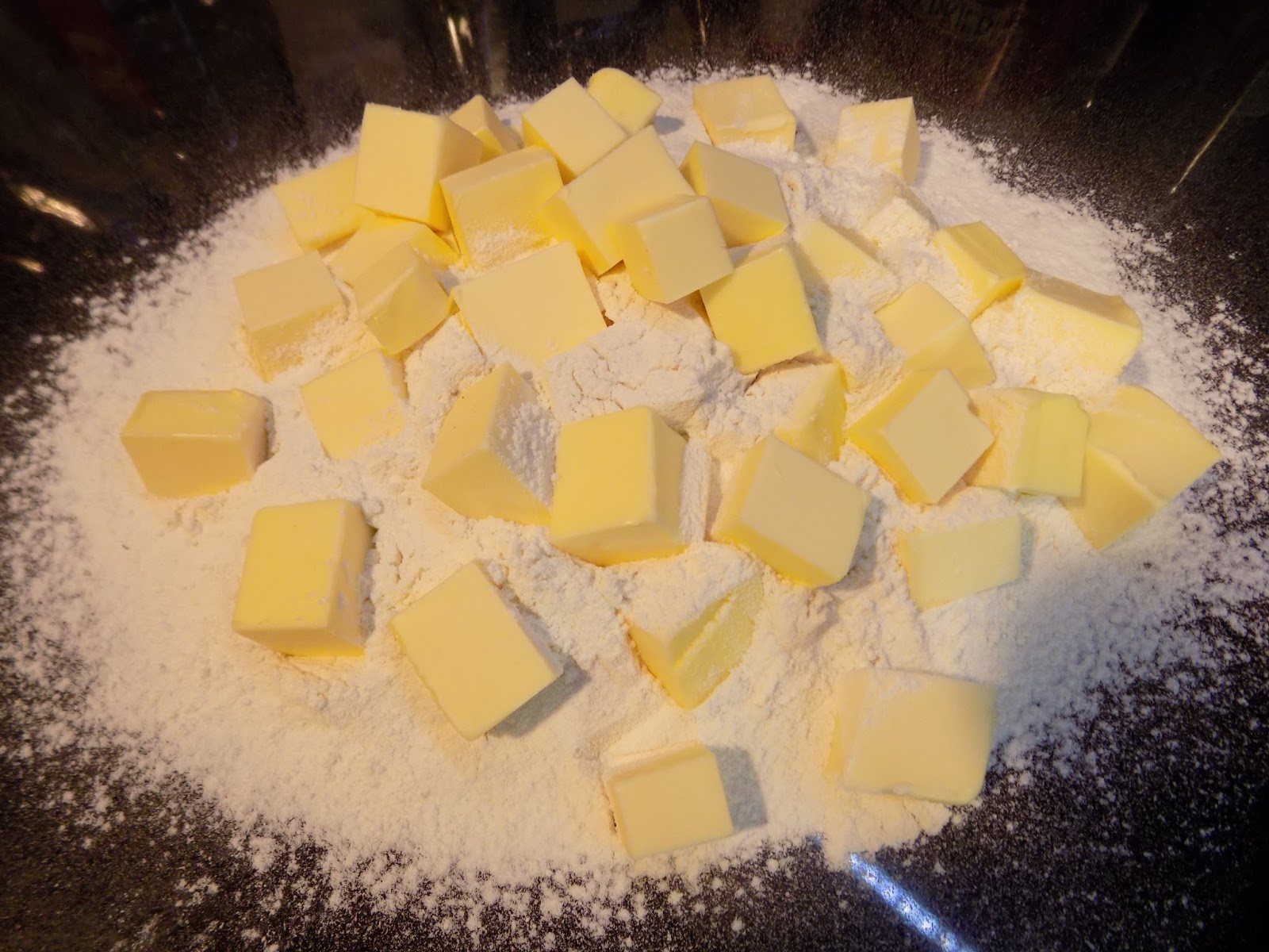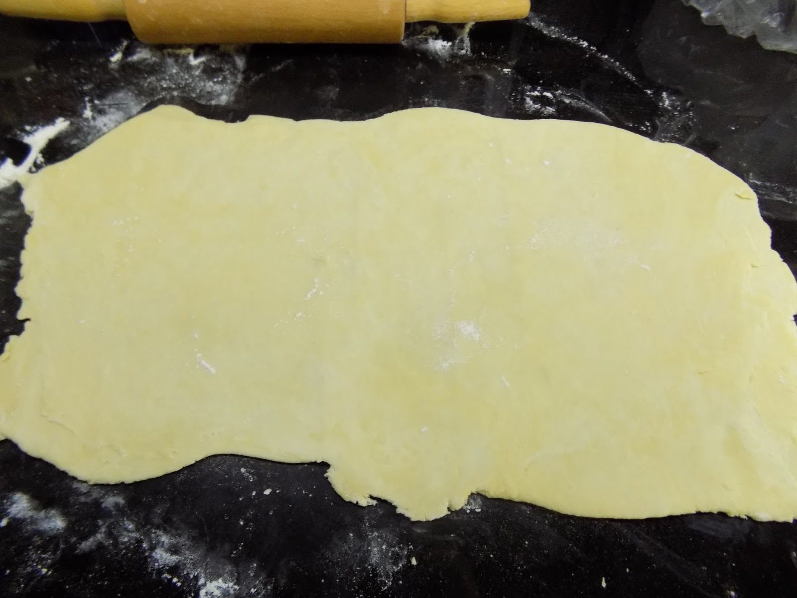 Kõigepealt siis sõeluda jahu tööpinnale või kuskile, kus saab või ja jahu kokku hakkida. Siis lõigata külmkapikülmast võist kuubikud ja asetada need jahule. Mina hakkisin taignakaabitsaga segu sõmeraks, kuna mul kivist tööpind siis mingit teravat nuga pole mõtet nüristada. Kui segu on selline pudine ja sõmer, võtan ma külma vee lahustan sinna sisse suhkru ja soola, ning vähehaaval lisan taignale ja vormin ta siledaks. Käesoojus hakkab kohe võid sulatama, seega tuleb tegutseda ruttu kui efektiivselt. Siis panen ta kilesse ja külmkappi seisma.