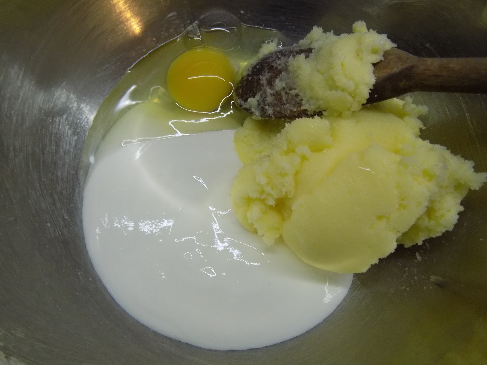 | Võiga segatud suhkur, lisatud muna ja hapukoor |