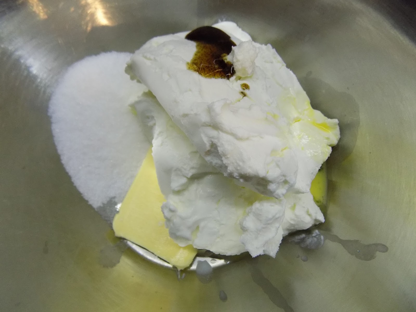 Kõigepealt siis kaaluda välja või, talle juurde suhkur, muna, kohupiim ja vanillikaunapasta, siis segada kõik ühtlaseks ja viimasena juurde lisada jahu, segada kuni on ühtlane mass.
