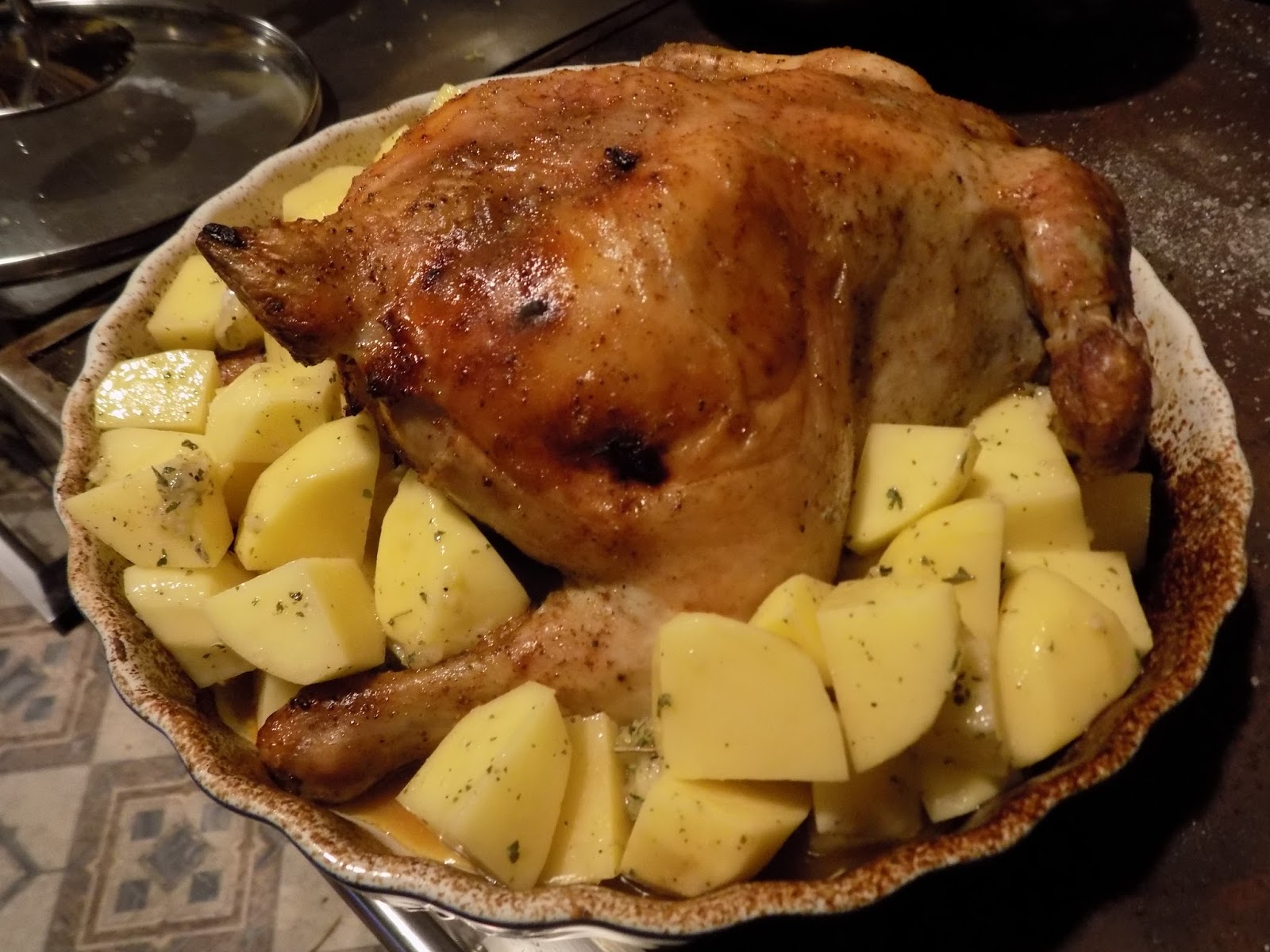 Kokku oli mul kanake ahjus ca 1,5 tundi, see aeg võib varieeruda kõiges, ahjus, täidises või kui külm ta oli enne ahju minekut, mis köögivilju juurde lisada jne. Mina tavaliselt tõstan ta koiba ja kui ma selle ilma vaevata kätte saan, siis on ta valmis, sest sealt on ta kõige paksem. Saab kontrollida ka torkides, kui väljavoolav leem on selge, siis on kana valmis.