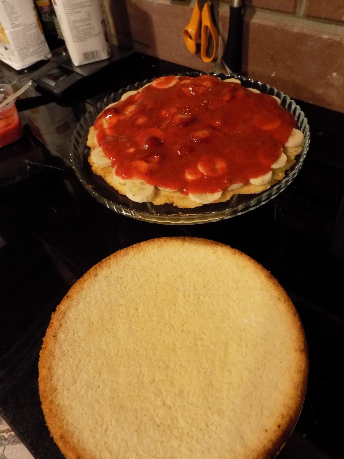Siis viilutasin banaanid, laotasin nad koos maasika toormoosiga liivapõhja peale ja saingi tordi kokku panna.