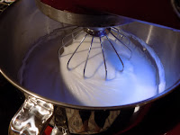 Siis kui siirup on oma temperatuuri saavutanud, tuleks teda peene nirena munavalge sekka lisada. Kui see on tehtud, lisasin ma oma masinale vunki juurde, lisasin sidrunhappe ja lasin tal umbes 10 minutit peaaegu täisvõimsusel töötada, et ta saavutaks tihke vahu konsistentsi.