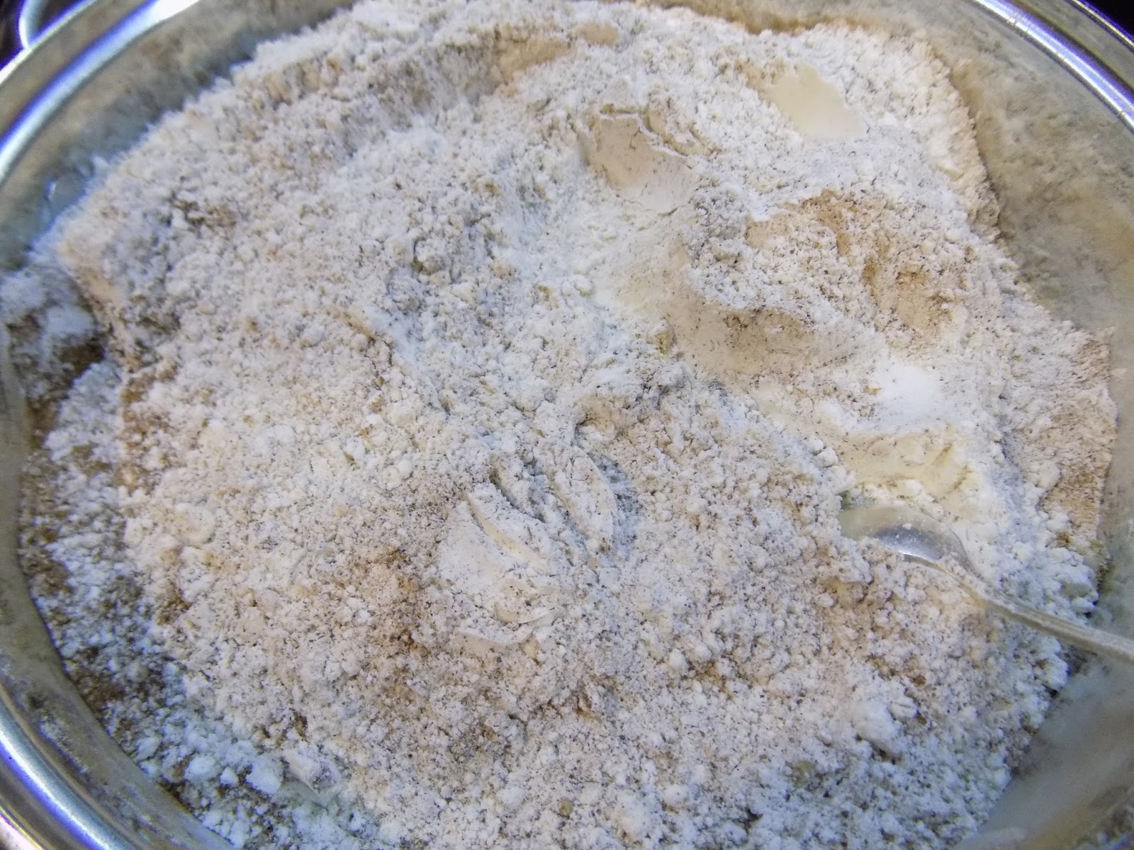 Nüüd tuleks võtta teine kauss ja kaaluda sinna jahu, sooda, küpsetuspulber ja kõik need mõnusad maitseained. Segada nad omavahel läbi. Siis jahu sõeluda siirupisegusse ja segada kiiresti ühtlaseks massiks. Kui teed masinaga siis peaasi on kohe lõpetada, kui näed et taigen on segunenud, muidu võid üle segada ja taigen hakkab venima.