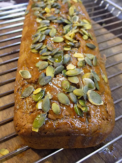 Vahetult enne valmimist, teen ma kastrulisse (kus ma enne võid sulatasin) glasuuri, selleks panen sinna või, suhkru ja piima, lasen keema ja võtan tulelt. Samal ajal röstin väikse panniga ka kõrvitsaseemned ära. Kui ahjust välja tuleb, lasin tal pisut vormis seista, siis võtsin ta välja ja panin restile jahtuma, kallasin üle glasuuriga ja raputasin peale seemneid.