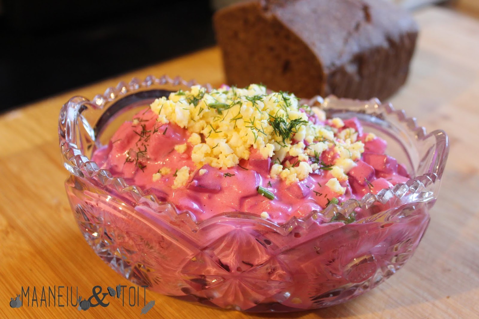 Kartul ja peet tuleks koorega keeta päev varem, et nad oleksid ilusti jahtunud salati kokku paneku ajaks.