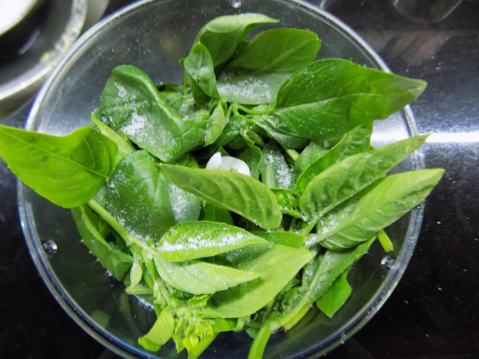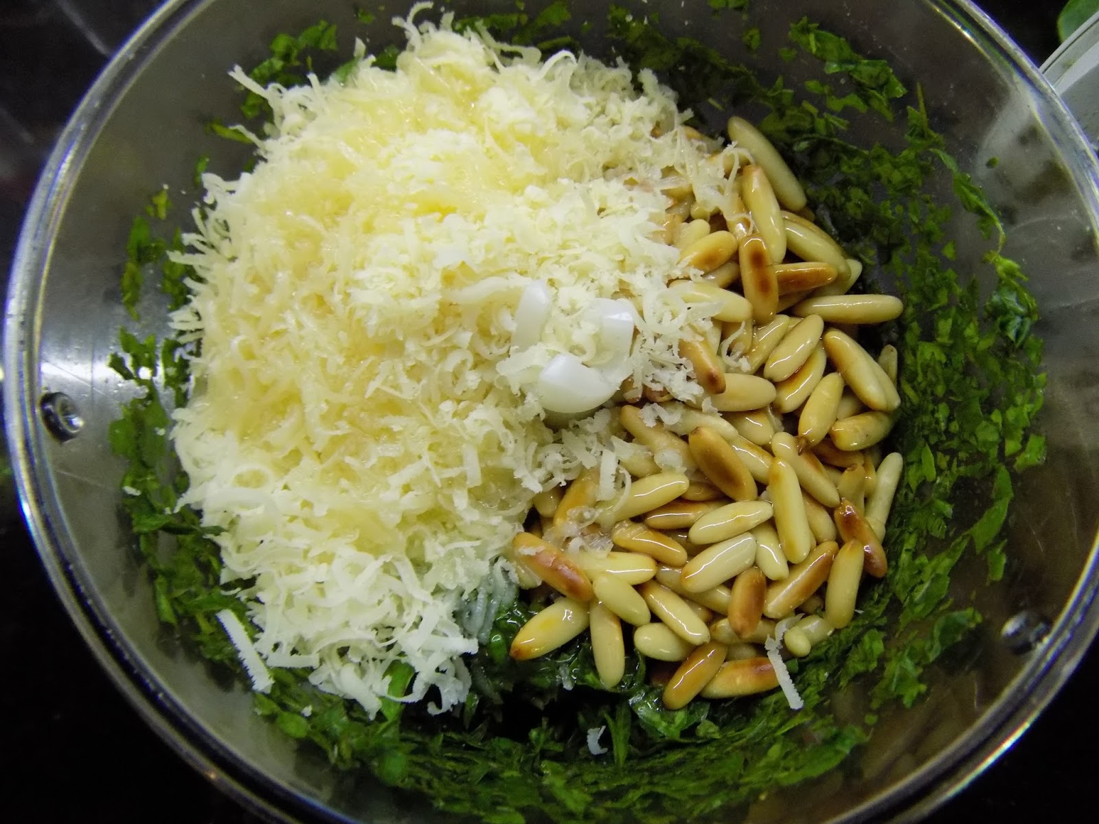 Siis topid tihkelt need basiilikud sinna anumasse, siis peale pisut soola ja lased esimese tiiru masinal ära käia. Riivi mõnus kogus parmesani ja lisa see basiilikule juurde, küüslauk, lisa ka röstitud piiniaseemned (võivad olla pisut soojad, ei juhtu midagi) ja lisa ka veel õli, võib algul lisada vähem hiljem saab konsistentsi timmida niikuinii.