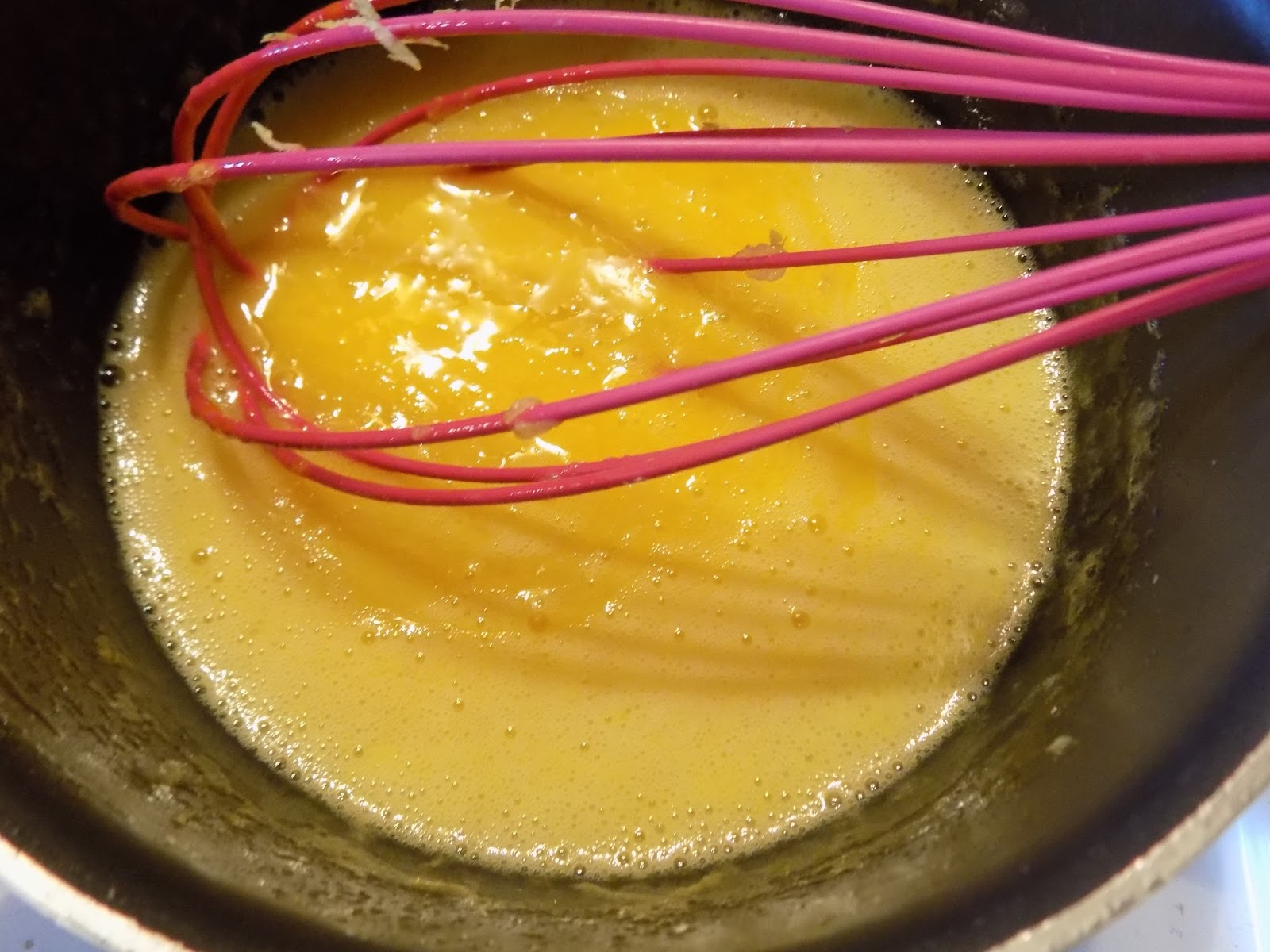 Kõigepealt riivi sidrunikoor (ainult kollane osa, valge on kibe) ja pressi välja mahl. Siis kaalu välja suhkur. Väikses kastrulis vispelda kokku kolm muna ja lisa tuhksuhkur, klopi mõnusalt kokku.