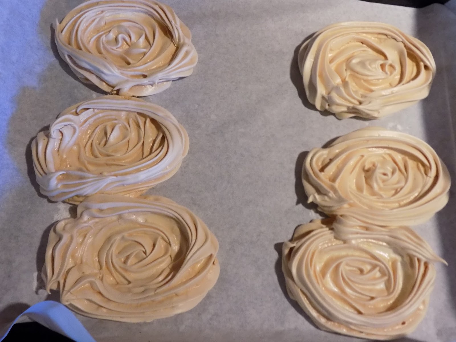 Kui 6 tükki on pritsitud siis lähevad nad ahju umbes 45-50 minutit, kuni besee on pealt kõva ja krõbe.