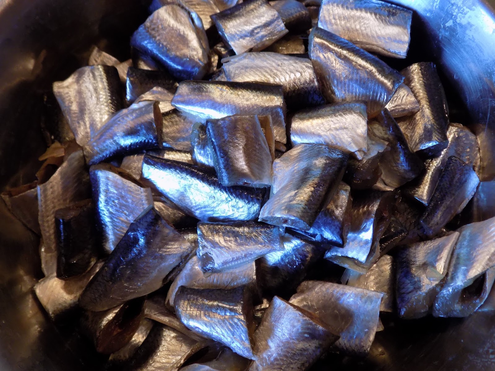 Töö järjekord hakkab korduma. Samamoodi käituda nagu eespool kirjas. Kui võtad poti tulelt maha jahtuma, siis alles lisada sinep, sool, suhkur ja viimasena äädikas. Seekord me siis ei viitsinud selgroogi välja kiskuda ja lõikasime lihtsalt suupärasteks tükikesteks.