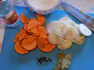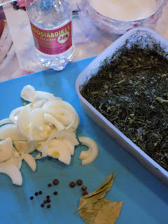 Seekord siis vaja vesi keema ajada ja keeta vaid sibulat. Siis lisada pipar, vürts ja loorber, keeta kuni sibul pehme ja tulelt maha. Siis sool, suhkur, äädikas ja viimasena till. Väga suvine ja kerge marinaad. Nagu näha siis selle marinaadi jaoks ei teinud räimedega me enam midagi, vaid terved räimed panime purki nagu kurgid ja marinaad peale.