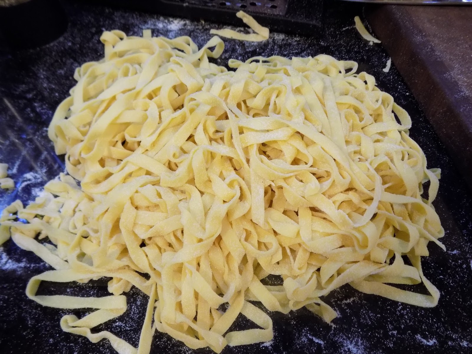 Koorene pasta on üks mõnusamaid lõuna-õhtusööke, kuid ta ei tohi olla liiga rammus ega ujuda selle koore sees, peab olema mahlane aga ikkagist tasakaalus. Me tegime ühe mõnusa ja kiire toidu, mida rikastab jällegi ise valmistatud ja rullitud tagliatelle pasta. Aga kui ei viitsi ise pastat teha, siis osta poest ja tee ainult kaste, mis võtab aega alla 10 minuti. Toidab jällegi 4-5 inimest.