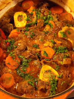 Klassikaline lisand osso bucole on risoto, aga kuna ma eelmine kord tegin seda risotoga, siis seekord keetsin lihtsalt farfalle makarone ja lisasin hautisesse. Mõnus leemeke jääb ilusasti makaroni külge. Hinnatud on selles toidus luuüdi, mis vaiksel podisemisel rikastab puljongit, lisades mõnusa rammususe juurde. Jätsin panemata valge veini, mis on osso buco juures kohustuslik, aga julgen tunnistada et maitse selle all ei kannata.