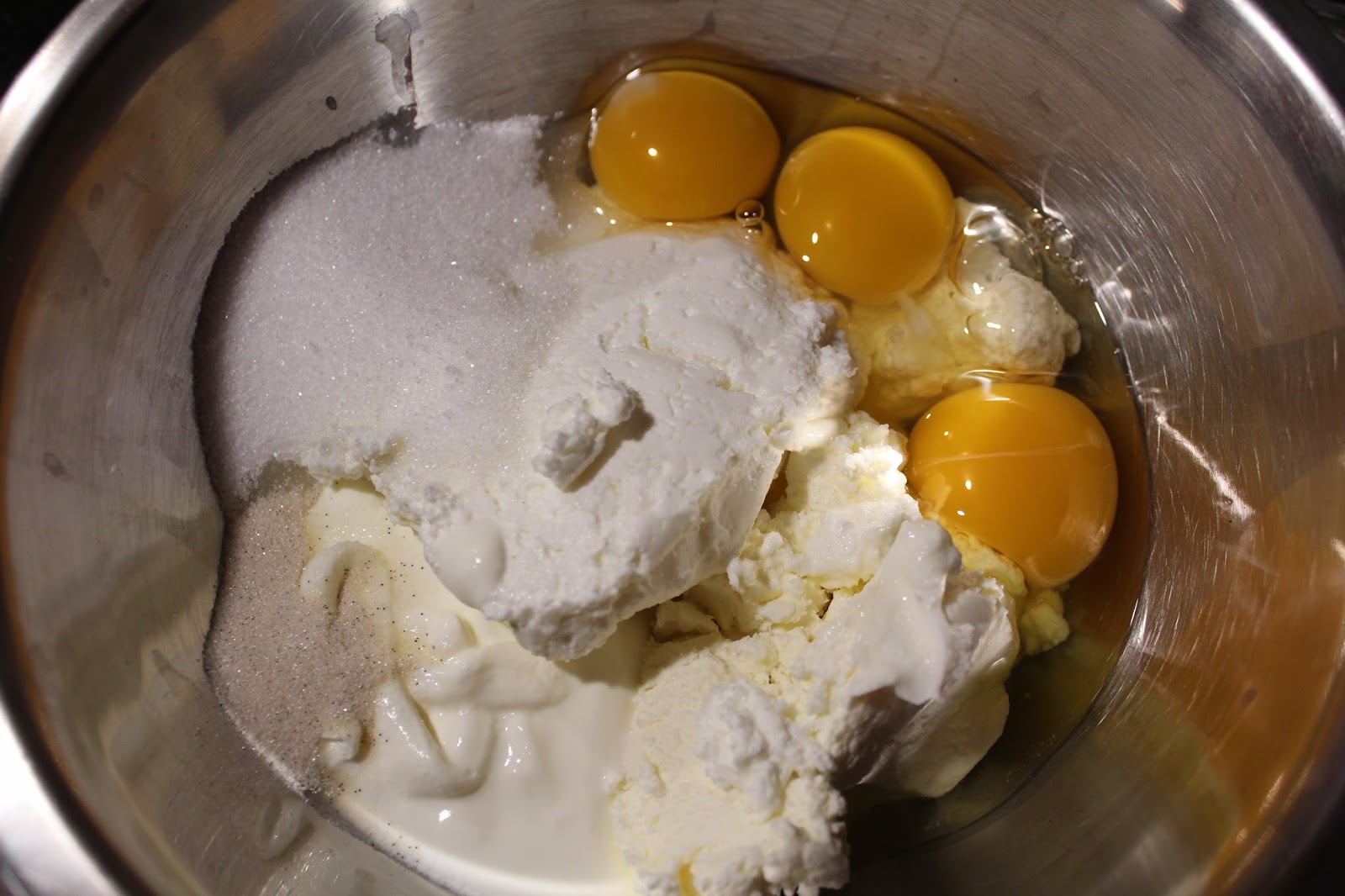 | Kohupiim, hapukoor, suhkur, muna, vanillisuhkur, vaja ainult mikserdada |