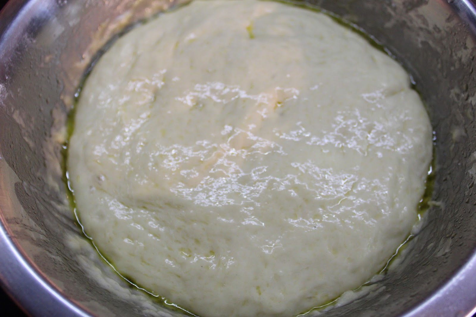 Siis ma soojendan kastrulis piima käesoojaks, segan sinna juurde pärmi, 1 tl suhkru ning lasen neil pisut aega seguneda. Siis kaalun juurde jahu, u 225 g ja klopin oma puulusikaga segu siledaks. See on siis eelkergitus. Mina panen oma eelkergituse ahju kerkima, sest mul on taigna kergitamise režiim, mis 35 kraadi juures hoiab temperatuuri ja lisab ka veeauru. Kuid mul Ema teeb täitsa tavalises ahjus ka seda sama kraadi juures. Ahjus pole tuuletõmmet, mida pärmitainas ei salli.